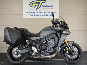 Has a nice Yamaha Tank Pad fitted and some crash bungs and side panniers Looks very nice in the black and red. Has a centre stand fitted.